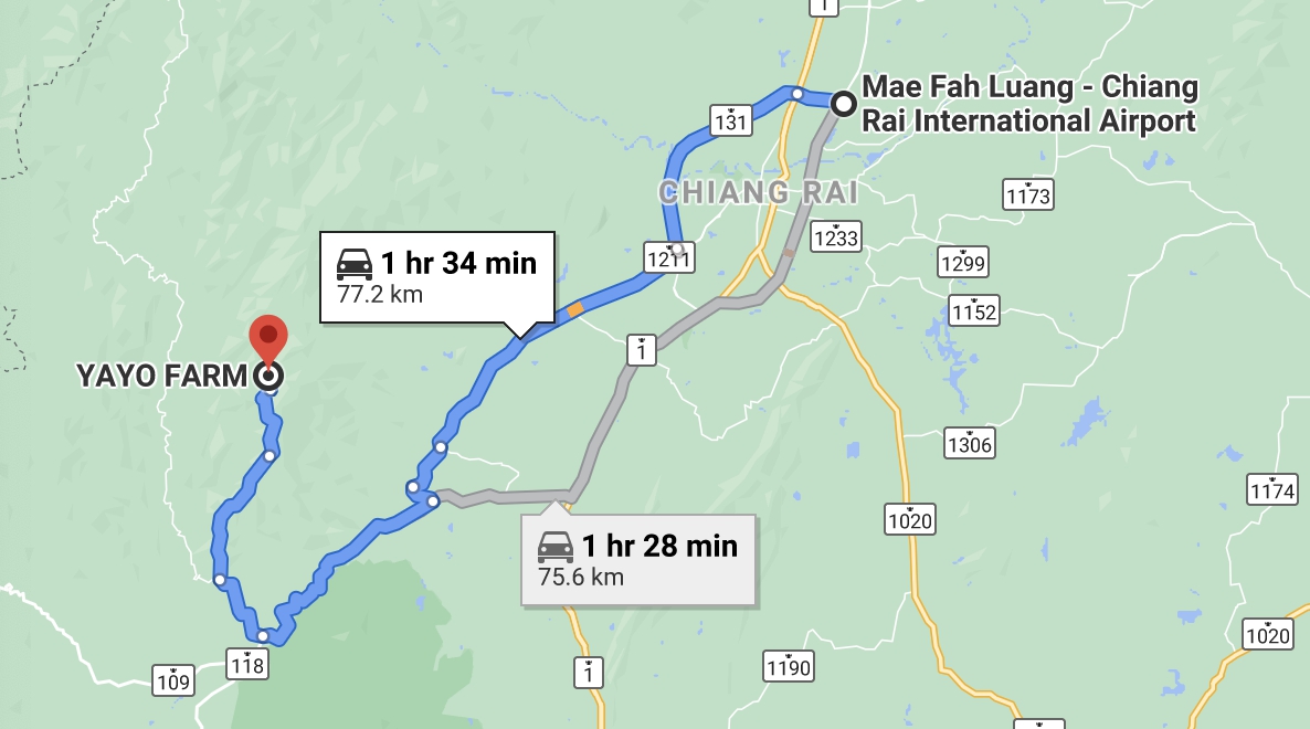 แนะนำลูกค้าเดินทางตามเส้นทางที่ google map แนะนำได้เลย จะใช้เส้นทางขึ้นอำเภอแม่สรวย ทางนี้จะไม่ชันมาก